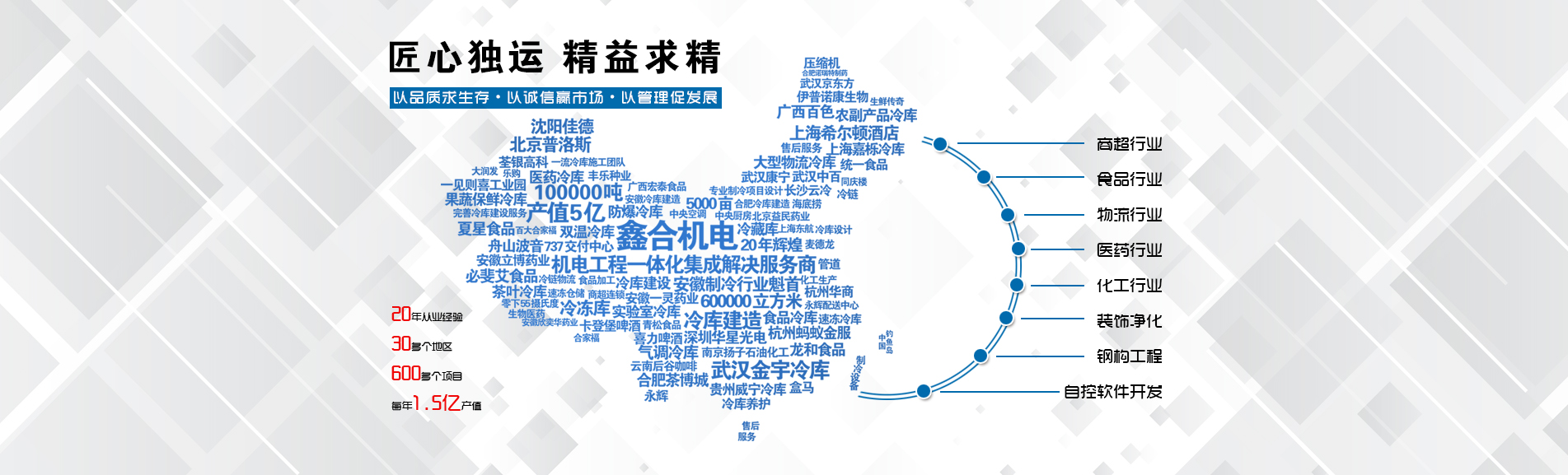 安徽鑫合機電設備有限公司于2002年組建運營,專業(yè)從事冷凍、冷藏庫、中央空調(diào)、醫(yī)藥凈化工程的規(guī)劃設計、施工承建、售后服務為一體的綜合性工程公司,與100多家實力雄厚的大中型企業(yè)建立長期產(chǎn)略合作關(guān)系,其中有多家世界500強和上市企業(yè)。公司作為中國倉儲與配送協(xié)會會員單位、安徽省制冷學會理事單位、上海楊浦區(qū)制冷協(xié)會工程總承包負責單位,引領于行業(yè)前沿。我們將銘記給予我們大力支持的各界新老朋友及合作伙伴,我們將會保持“互惠互利、共同發(fā)展”的原則與您共創(chuàng)雙嬴的合作關(guān)系。